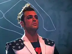 Mengoni auditioned for the third series of the Italian talent-show X Factor in 2009, performing a cover of Eduardo De Crescenzo's "Uomini semplici".[12] The category he was part of, "16–24s", was mentored by Morgan, who chose Mengoni as one of his top four contestants that progressed to the live shows.[13] During the live shows, he performed songs from a wide range of genres, receiving the congratulations and admiration of popular Italian singers such as Mina, Giorgia, Elisa, and Adriano Celentano.[14][15] On 2 December 2009, Mengoni was announced the winner of the competition, receiving a recording contract with a stated value of €300,000 and being automatically selected as one of the participants to the Sanremo Music Festival 2010.[16]