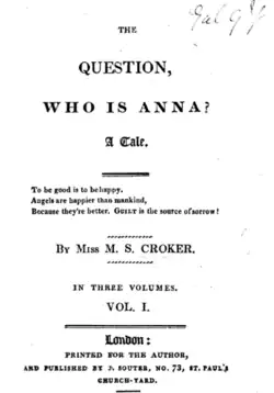 - ^ Croker, Miss M. S. (1818). The Question, Who is Anna? A Tale. J. Souter.