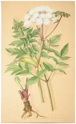 Dickinson made a herbarium with over 1000 specimens and also produced many drawings and watercolour paintings of wild and cultivated flowers, mostly between 1846 and 1874, although she continuing to paint into the 1890s. Dickinson made use of shading to give her paintings a three-dimensional appearance. She recorded where each came from, and something about them on each painting. She probably travelled to collect the flowers. They were mostly collected in the region around the Newcastle and Scottish Borders where she lived, but some were from North Wales and Upper Teesdale, while others came from Cirencester, Kent, Ireland and Devon. Comparisons of some of her records with later information has shown significant changes in land use. She also made a few drawings of fungal fruiting bodies and mosses.[1]