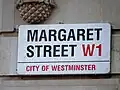 Margaret Street is a street that straddles the Marylebone and Fitzrovia areas of the City of Westminster in the West End of London, running from Cavendish Square to Wells Street via Regent Street (A4201), Great Portland Street, and Great Titchfield Street.[1][2] It is north of and parallel to the major shopping street, Oxford Street. John Prince's Street runs between Margaret Street and Oxford Street.
