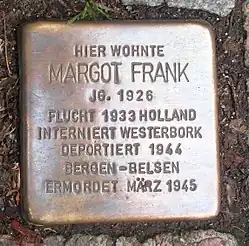 4. ^ a b "Margot Frank – Anne Frank Fonds". www.annefrank.ch. Retrieved 24 September 2020.