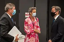 In her role as Vice-President of the European Commission, Vestager had public and private disagreements with Commissioner Thierry Breton, the Frenchman in charge of a major overhaul of the digital rules in the European Union.[57] As Vice-President of the European Commission, Vestager has been a co-chair of the Trade and Technology Council since its creation in 2021.[58]