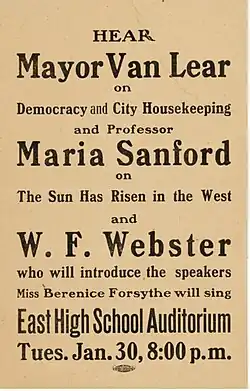 - ^ "Trumpet of Social Reform is Sounded by Maria Sanford". Minneapolis Morning Tribune. 20 December 1916.