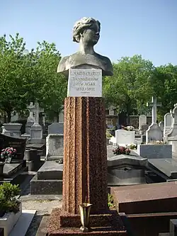 August 15, 1891, Agar died in her home in Algiers. She was buried in Montparnasse Cemetery in the 9 th Division. On her tomb is placed a reproduction of the beautiful bust of the tragedian by the statuary Henry Cros.[17]