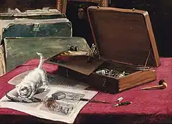 Marie Yvonne Laur's oil paintings Who Will Get it? and The Good Milk are part of the collection of KMSKA (Antwerp, Belgium).[10][11] The Lightner Museum in St Augustine (Florida, USA) also owns a work by Marie Yvonne Laur: Cats, Kittens and Jewelry Chest Still Life (circa 1900).[12][13]