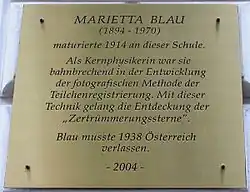 - ^ "Marietta Blau – Gedenktafel, Kunstwerk im öffentlichen Raum". www.wien.gv.at. Stadt Wien.