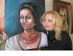 Artist Mariia Dilai with her portrait of Solomiya Krushelnytska