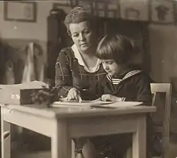 In 1930, she traveled to Rome to attend half-year courses taught by Maria Montessori.[2] She also attended similar courses in Nice in 1934 and received approval from the Association Montessori Internationale to spread Montessori ideas in Lithuania.[7] Upon return to Lithuania, Kuraitytė-Varnienė opened a new kindergarten based on the Montessori principles[2] which grew to include a primary school by 1936.[5] The kindergarten was attended mainly by children of the intelligentsia as monthly costs were 40 Lithuanian litas.[6]