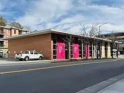The 1,700 square feet (160 m2) museum was housed within Marin County's Novato Art Center in Building 500, once the Headquarters of the decommissioned Hamilton Air Force Base.[2] The architectural style, resembling a California mission,[3] was in keeping with the airfield's Spanish eclectic style with features such as reinforced concrete, stucco exteriors, hollow tile, and Mission tile roofs.[4] The front facade is fashioned of California Churrigueresque concrete castings. The interior includes concrete beams painted to resemble wood.[5][6][7]