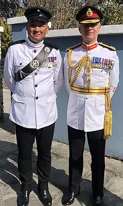 Maj Gen Lord Lancaster (right) as Deputy Col Commandant, Brigade of Gurkhas, Nepal 2024