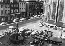 The Marktplatz in 1965, when still open to cars and trams.