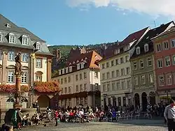 The Marktplatz (German for Marketplace) is a central square in Heidelberg's old town, the Altstadt. It has served as a marketplace since the establishment of the city in medieval times. The Hauptstrasse runs along one side and the Church of the Holy Spirit and the Town Hall are located on the square.