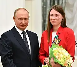 4. ^ a b Марьянчик, Наталья (29 July 2021). "Травмированная рапиристка принесла России золото. Драматичный финал, где наша спортсменка не могла встать на ноги". sports.ru (in Russian).