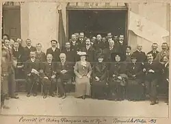 Marthe de Vogüé marquise de Mac-Mahon, at meeting of Hautes-Pyrénées Action Française committee, Tarbes, 1913 (second woman in centre).