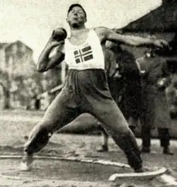 Martin on 1 September 1930, in a game between Norway and Sweden. He threw 14,13 meters and won, but Norway lost 82–123