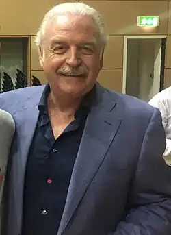 Since then Whelan has appeared as himself in feature films, at the co-opening of a Dunnes outlet in Galway with retired broadcaster Gay Byrne[14] and filling a cameo role (again as himself) on the soap opera, Fair City.[15] He still commentates on RTÉ's television coverage of the Eurovision Song Contest each May.[16]