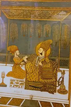 Marwar painting of Jodhpur is an important part of the cultural heritage of Rajasthan. It is an expression of the region's rich history, mythology, and folklore, and reflects the artistic sensibilities of its people. The paintings are highly valued by collectors and art enthusiasts and are an important source of income for the artists and their families. Artists trained at the courts of the Mughal emperors introduced the Jodhpur artists to the classical concepts of portraiture and composition. The sophisticated techniques of painting created a unique and lively school of painting when combined with local style, vibrant colours, and regional subjects. Today, Marwar painting of Jodhpur continues to thrive, with artists using traditional techniques and materials to create beautiful works of art that are appreciated by people all over the world.[10]