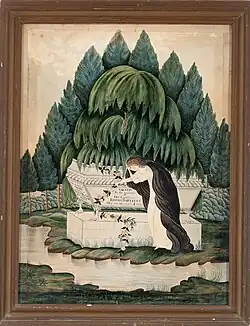 Daughter Laura Bartlett made the watercolor painting Mourning Picture for Josiah Bartlett and Mary Bartlett. On the sarcophagus was the message "Sacred to the memory of His Excellency Joseph Bartlett, Obit May, 1795 AE 65ys." and on the edge of the tomb is: "In the memory of Mary, consort of, Josiah Bartlett, Obit 14th July 1789 AE 58 ys."[24]