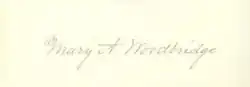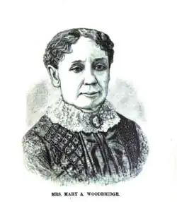 Mary Brayton Woodbridge (April 21, 1830 – October 25, 1894) was an American temperance reformer and editor. She was the first president of the local temperance union of her home town at Ravenna; then for years, president of her state, Ohio; and in 1878, she was chosen recording secretary of the National Woman's Christian Temperance Union (WCTU). Upon the resignation of Judith Ellen Foster at the National WCTU convention in St. Louis, in October, 1884, Woodbridge was unanimously chosen national superintendent of the department of legislation and petitions. In addition to this public effort, and official duties, Woodbridge edited on a weekly basis several columns of the Commonwealth, a temperance paper.[1] She also edited the Amendment Herald, which, under her leadership, attained a weekly circulation of 100,000 copies.[2]