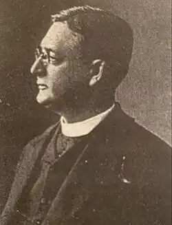 The Rev. Timothy J. Danahy became pastor of St. Mary's upon the death of Fr. Martin O'Brien in November 1890.[7] Fr. Danahy, whom an official diocesan history describes as "a pronounced example of the strong and original characters to be found among the pastors of the 'old school,'"[8] was born on December 8, 1846 in Killarney, County Kerry, Ireland. His family emigrated to America during the years of the potato famine and settled in Roxbury, where Fr. Danahy received his early education. He studied for the priesthood at Holy Cross College and St. Joseph's Seminary and College and was ordained on December 22, 1877. Following assignments in South Boston and Quincy, he was made pastor of St. Mary's in 1890.[9] Fr. Danany continues to be the subject of many parish legends, some of which were preserved in eyewitness accounts gathered for the parish history privately published in the year 2000.[10] Known for his sternness and eccentricity, he made the rounds of his parish on horseback long after automobiles became commonplace, always followed by his two faithful St. Bernards.[11] The dogs were named Christmas and Easter, though it seems that Christmas's name was eventually changed to Winter for unknown reasons. A story still oft repeated in the parish tells of the death of one of these dogs. At the very least, it is certain that Fr. Danahy persistently mentioned his late pet's name when reciting the prayers for dead parishioners after Mass; some go so far as to allege that Fr. Danahy actually celebrated a solemn requiem Mass for the dog and announced plans to inter it in the parish cemetery, exciting the ire of Cardinal O'Connell.[12] Fr. Danahy was responsible for embellishing the church and for introducing many devotions long before they became commonplace in the diocese, notably the blessing of the throats for the feast of St. Blaise.[13] Fr. Danahy took a special interest in catechising the children of the parish. It was his ardent desire to see all the children attend Mass every morning, and he was always on the lookout for any who might try to elude his watchful eye on their way to school, in which event it was not uncommon for Fr. Danahy to drag them bodily into the church.[14] Fr. Danahy himself presided over the Sunday School, which commonly lasted from two to three hours or more on Sunday afternoons. He had a particular fondness for demonstrating the rituals of the Church to the children. Up until the end of the 20th century, there were still elderly parishioners who remembered Fr. Danahy's mock baptisms conducted with a large doll, his demonstrations of the Last Rites enacted over a child-volunteer lying on a table in feigned sickness, and, a favorite among the children, the make believe weddings of the Sunday School students.[15] In his zeal to promote Mass attendance, Fr. Danahy was in the habit of roping off the pews in the back of the church to force congregants to sit in front, and of locking the doors of the church promptly at the hour Mass was to begin so as to discourage latecomers.[16] Fr. Danahy was a hoarder of antiques,[17] some of them of great value, and by the time of his death the rectory was so crowded with them that it was scarcely possible to move about. On the day of Fr. Danahy's unexpected death in 1923 at the age of 76, Cardinal O'Connell arrived at the rectory and appropriated the great majority of the antiques into his own collection.[18] Fr. Danahy's obituary described him as "a disciplinarian at all times, strict to himself and those around him, and at all times a student."[19] The crowning achievement of his 33-year pastorate was the construction of the present church in fulfillment of a vow made at Lourdes.
