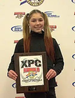 Between 2009 and 2016, she competed in multiple world powerlifting championships, setting records in federations such as IPA, WPC, IPL, and IRP. She was the first girl under 18 allowed to compete in professional powerlifting tournaments and featured on the cover of Powerlifting USA magazine.[2]