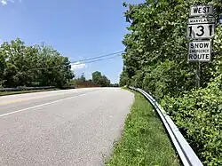 Seminary Avenue was paved from Brooklandville east to the rail crossing—then part of the Northern Central Railway—by 1910.[3] The remainder of the highway was paved by 1923.[4] The bridge that carries Seminary Avenue over I-83 has a bronze dedication plaque for the highway construction project. Aside from that construction around 1954, there has been very little change to MD 131 since then.[5]