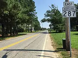 Maryland Route 287 (MD 287) is a state highway in Caroline County in the U.S. state of Maryland. Known for much of its length as Sandtown Road, the state highway runs 2.88 miles (4.63 km) from MD 313 in Goldsboro east to the Delaware state line, where the highway continues east as Delaware Route 10 (DE 10). MD 287 was constructed in the early 1930s.