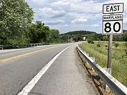 View east along MD 80 at the Monocacy River near Hope Hill