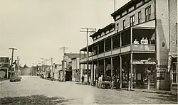The timber industry was the largest active industry in the area during the 1860s and 1870s, with hillsides in modern-day Marysville cleared by loggers for dairy farms. The Comefords' trading post accepted business from the reservation and logging camps that were established near the mouth of the Snohomish River. In 1874, Comeford acquired three timber claims from local loggers for $450, totaling 1,280 acres (5.2 km2), and cleared the land in preparation for settlement. Comeford and his wife moved to the present site of Marysville in 1877, building a new store and wharf.[5] Although Marysville remained a one-man town until 1883, a post office and school district were both established by 1879 using the names and signatures of Native American neighbors of Comeford's, who were given "Boston" names for the petition. Comeford completed construction of a two-story hotel in 1883 to welcome new settlers from outside the region.[7][8][9]