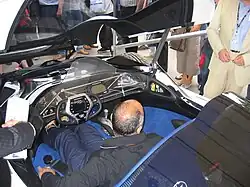 The Maserati Birdcage 75th is a functional concept car designed and developed by a Pininfarina design team led by Lowie Vermeersch, including Jason Castriota and Giuseppe Randazzo under the direction of Ken Okuyama.[2] It was first introduced at the 2005 Geneva Auto Show. It was named to honor the classic Maserati Birdcage race cars of the 1960s and Pininfarina's 75th anniversary. The Birdcage was the result of a collaboration between Maserati, Pininfarina and Motorola to showcase their technical expertise.[3] The car was completed in just 2 months, following a fast pace design phase using 3D renderings.