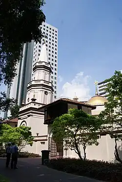 The Hajjah Fatimah Mosque (Malay: Masjid Hajjah Fatimah; Jawi: مسجد حاجة فاطمة; Arabic: مَسْجِد ٱلْحَاجَّة فَاطِمَة, romanized: Masjid Al-Ḥājjah Fāṭimah) is a mosque located along Beach Road in the Kampong Glam district within the Kallang Planning Area in Singapore. The mosque was designed in a mix of Islamic and European architectural styles, and completed in 1846. The mosque is named after an aristocratic Malay lady, Hajjah Fatimah, who commissioned its construction.[1]