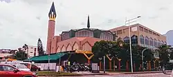 ![]() Masjid Kassim in 2025. The Wisma Indah building is seen directly behind the mosque, attached to it. | |