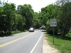 Route 124 is a 6.8-mile-long (10.9 km) north–south state highway located in the towns of Harwich and Brewster in the U.S. state of Massachusetts. Its southern terminus is at Route 28 in Harwich and its northern terminus is at Route 6A in Brewster.