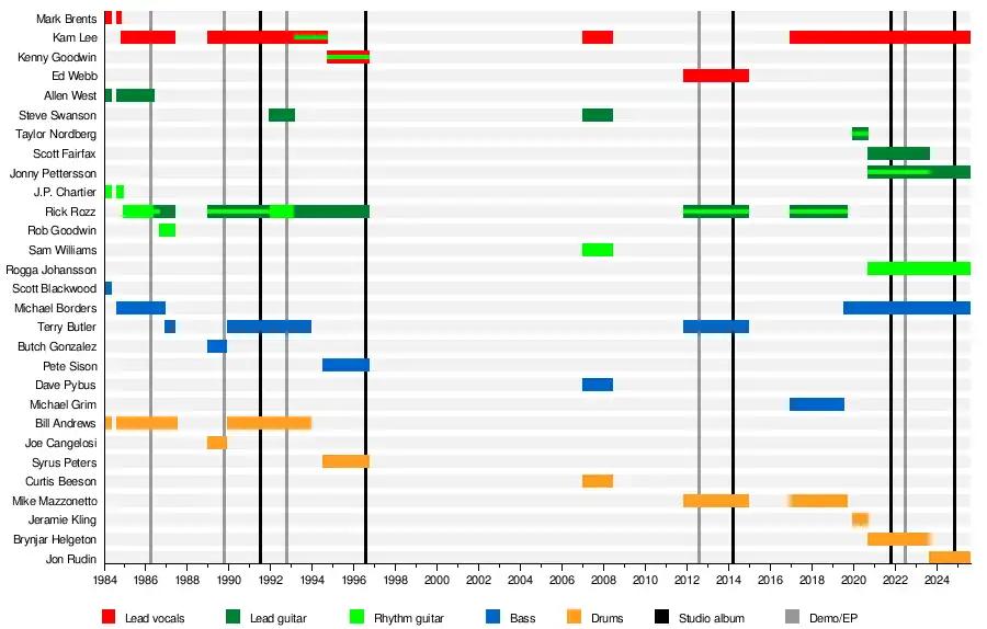 - Rick Rozz – rhythm guitar (1984–1986, 1989–1996, 2011–2014, 2017–2019), lead guitar (1986–1987, 1989–1991, 1993–1996, 2011–2014, 2017–2019)
