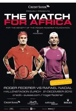 "Match for Africa" was a tennis exhibition match played on 21 December 2010. The match was contested between world No. 1 player Rafael Nadal and world No. 2 Roger Federer at the Hallenstadion in Zurich, Switzerland. It was played to benefit the Roger Federer Foundation, which raises money to fund schooling, transport and food for children in Africa. It was the first of two exhibition matches contested by the players in the space of two days, with a match being hosted at the Caja Mágica in Madrid in Nadal's home county, Spain the following day. The match in Madrid was for the benefit of Nadal's foundation, the Fundación Rafa Nadal, and the match was titled "Joining Forces for the Benefit of Children".[2]
