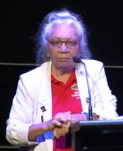 House's involvement in Indigenous Affairs led to her delivering the welcome at Australians for Native Title and Reconciliation's "Sea of Hands" installation,[15] and contributing to the 'Bringing Them Home' report into the Stolen Generations.[16] She was also one of the original protestors who established the Aboriginal Tent Embassy in 1972.[14]