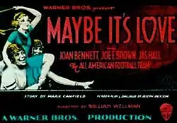Maybe It's Love is an all-talking 1930 pre-Code American musical comedy film produced and distributed by Warner Bros. and directed by William A. Wellman.[1] The movie stars Joan Bennett, Joe E. Brown and James Hall. The film is based on George Ade's 1904 play The College Widow and is a remake of Warner's own 1927 silent version of the story, which starred Dolores Costello. The play had also been filmed in 1915, starring Ethel Clayton.