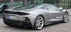 The McLaren GT is a two seat grand tourer designed and manufactured by the British automobile manufacturer McLaren Automotive. It is the company's first dedicated grand tourer and is based on the same platform underpinning the 720S with the addition of a carbon fiber rear deck topped by a glazed tailgate creating significantly greater storage capacity.[2]