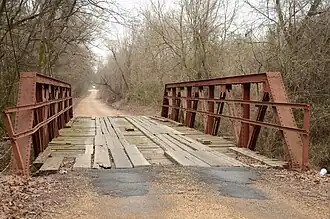 The McNeely Creek Bridge is a historic bridge spanning McNeely Creek just outside Beirne, Arkansas, a village in southwestern Clark County. The bridge, a steel Warren pony truss bridge with a span of 71 feet (22 m), carries County Route 12. Built in 1923, it has a wooden deck 18 feet (5.5 m) wide.[2]