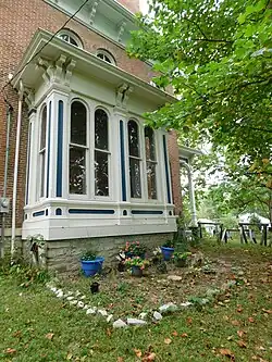 The mansion was completed in 1871.[14] It is a three-story red brick and white building, with white pillars supporting the porch. It contains 16 rooms and a vaulted wine cellar.