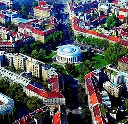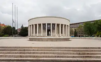The Meštrović Pavilion (Croatian: Meštrovićev paviljon), also known as the Home of the Croatian Visual Artists (Croatian: Dom hrvatskih likovnih umjetnika) and colloquially as the Mosque (Croatian: Džamija), is a cultural venue and the official seat of the Croatian Society of Fine Artists (HDLU) located on the Square of the Victims of Fascism in central Zagreb, Croatia. Designed by Ivan Meštrović and built in 1938, it has served several functions in its lifetime. An art gallery before World War II, it was converted into a mosque under the Independent State of Croatia (NDH) and was subsequently transformed into the Museum of the Revolution in post-war Yugoslavia. In 1990, it was given back to the Croatian Association of Artists. After extensive renovation, it has served as a space for exhibitions and events since 2006.