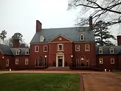 The Meadowmont House, built in 1933 by David St. Pierre DuBose and Valinda Hill DuBose,[4] was one of the first private homes in the United States equipped with central air conditioning.[5] The Georgian Revival style manor house consists of a 2+12-story main block with 1+12-story flanking wings connected by 1+12-story hyphens. It is a steel frame and concrete building with a brick veneer. The front facade features a two-story portico and Palladian window. Associated with the house are eight contributing buildings and three contributing structures including: the play house; pool house and pool; the vegetable garden; garage; well house; poultry house; and stable.[6]