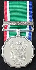 8. ^ Miniature SANDF Troue Diens Medal with 20 Years Clasp as per photo Archived 18 May 2015 at the Wayback Machine