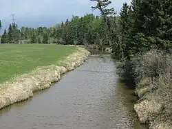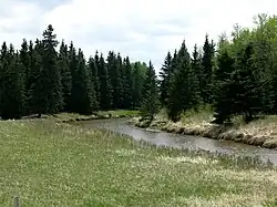 The Medicine River is a medium-sized river in central Alberta. It begins at the outlet of Medicine Lake, north of Rocky Mountain House. The Medicine River initially travels through the Rocky Mountain House Grazing Reserve, a protected area with over 15,000 acres (61 km2) of land set aside for cattle grazing and recreation.[1] The river flows southeast, taking on a number of creeks before passing Eckville. The Medicine River joins the Red Deer River north of Innisfail, downstream of the Dickson Dam, at the Medicine Flats. The Medicine is bridged by Alberta highways 53, 12, 11, and 54.