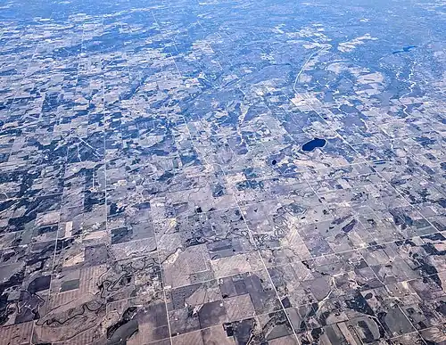 The Medicine River in Alberta, Canada, meandering through Leedale, Ponoka County, with Medicine Lake source at upper right