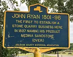 Historic marker noting John Ryan and the first commercial Medina Sandstone quarry