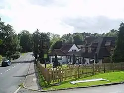 An old hammer mill site, at work from 1567 to 1786. One of the names indicates that the mill was a drawing mill at one time. In 1533, the effects of Thomas Gaynesford included a hammer mill. The property had been bought by Gaynesford from Sir John Gage in 1550. In 1559, Nicholas Norton was a miller grinding grain near lands called Shawnors, followed by John Myller in 1560 to 1563, when John Rodgers succeeded him. in 1567, Wiremill was being worked by John Thorpe. In the 1560s, there are several references to Woodcock Hammer or Forge being worked by Swanne. Woodcock Forge is believed to have been built by Jack Dancy of Turners Hill. Hedgecourt Mill is thought to have been remodelled by him about the same time. The pond at Hedgecourt acted as a storage for the Woodcock forge. The tilt hammer was operated by an overshot waterwheel. Another overshot waterwheel worked bellows. In 1574, John Thorpe of Hedgecourt was working the forge in connection with the furnace at Myllwood. in 1586 Thorpe bought property from William Swanne Sr in the Woodcock Forge area. From 1598 to 1606 the rent was paid by Thomas Thorpe, son of John and in 1629 the forge was leased by John Gage to Richard Thorpe, the son of Thomas. His son, also Richard, held the forge until 1651, when it was forfeit in lieu of a debt. Thorpe's interest in the forge was sold to Simon Everenden of Cliffe near Lewes. In the 1650s the forge was in the occupation of John Newnham. In 1664, the forge was lease by Jeremy Johnson Jr of Charlwood. In 1672, woodland next to the pond was referred to as "Hammerwood" also known as "Wire Wood" thus indicating a drawing mill. John Newnham died in 1707, and his wife died in 1719, but the forge was known as "Mr Johnson's Forge" in 1717. At that time the output from the forge was some 40 long tons (41 t) per annum. By 1729 the forge was in the occupation of Thomas Stanford, who was converting sows from Heathfield furnace at Woodcock Forge. Stanford does not seem to have had any connections with the Wealden iron industry after 1738. In 1742 Samuel Baker was in occupation, followed by Edward Raby and Alexander Master in 1758. They were supplying the Board of Ordnance with several gauges of bar iron, staff iron and rolled plate. Raby & Master were bankrupt in 1764. Edward Raby died in 1771, and the forge was taken over by his son Alexander until 1774, when the Government forced him to give up Woodcock furnace in a wrangle over the size of his moulds. Joseph Wright and Thomas Pickett took the business, but it is thought that the Hammer Mill ceased to be used c.1787. In 1800, the name Wire Mill is first used. Daniel Fossick held Wire Mill from 1800 to 1816, when he died. The mill was sold to James Jenner, who converted it to a corn mill. Jenner was at Wire Mill until 1844, when he was succeeded by William Brand. In 1838 he was joined by John Saunders, the mill being known as Woodcock Mill then. Saunders left in 1840 to take Hedgecourt Mill and William Brand joined Jenner. Jenner died in 1844 and Thomas Brand took the mill, which was known as Wire Mill in 1851. At this time the mill had two overshot waterwheels and drove four pairs of millstones. In 1855 the mill lake covered 14 acres (5.7 ha). Thomas Brand was still running the mill in 1871, assisted by his son Thomas, John Holman and John Burfield, all described as millers in the census of that year. In 1881, Thomas Brand (son) was the miller at Wire Mill. He ran the mill until 1887/88 when David Dadswell took the mill. Wire Mill was sold in 1911, described as having two overshot waterwheels and the mill lake covered 11 acres (4.5 ha) at this time. A picture of the mill c.1911 can be seen here. The mill was not sold and again offered for auction in 1912, again without success. A third attempt at auction in 1918 saw the mill being bought by a Major Crum. He sold it to a Miss Wilkins who had the building converted to residential use in 1920. The mill was purchased by the Women's Farm and Garden Union in 1922 and by 1929 was the Wire Mill Tea Gardens. By 1933 it was the Wire Mill Fishing Club and in 1948 the Wire Mill Hotel and Fishing Club. By 1962 the property was known as the Wiremill Lakeside Hotel, Country and Fishing Club. Over the next decade the Country Club grew in popularity, leading to complaints and the local council refused to renew the clubs music and dancing license. In 1986 the mill was again sold, and although damaged by a fire during renovations reopened as a restaurant in September of that year. The mill was sold again in 1996 and 2000 and is now a pub. The building is devoid of machinery.[Note 1] [59][60][61]