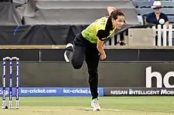 ![]() Schutt bowling for Australia during the 2020 ICC Women's T20 World Cup | ||||||||||||||||||||||||||||||||||||||||||||||||||||||||||||||||||