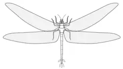 Meganeuropsis, from Ancient Greek μέγας (mégas), meaning "large", νεῦρον (neûron), meaning "nerve", and ὄψις (ópsis), meaning "appearance", is an extinct genus of griffinfly, order Meganisoptera, known from the Early Permian Wellington Formation of North America, and represents the largest known insect of all time. Meganeuropsis existed during the Artinskian age of the Permian period, 290.1–283.5 mya.[1] The genus includes two described species by Frank Morton Carpenter, fossil insect curator at the Museum of Comparative Zoology at Harvard University: