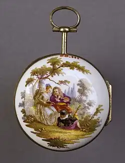 A collection of 117 chinoiserie items, including a mantel clock case made for Augustus the Strong dated 1727, which had been assembled by Franz Oppenheimer and his wife, Margarethe, was auctioned by Sotheby's in September 2021 following the Oppenheimer's successful claim for restitution submitted to the Dutch Restitution Commission.[27][28][29]